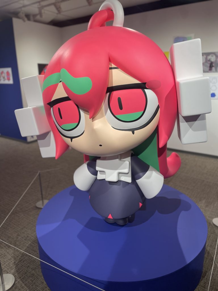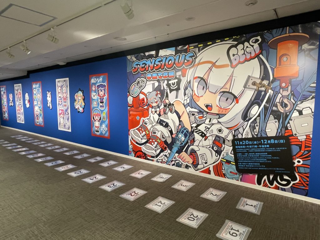 また、オリジナルの巨大フィギュア「てん死ちゃん」が展示されており、その可愛さと存在感に感動します。フィギュアのデザインは寺田さんの世界観を余すことなく再現しており、多くの来場者が足を止めて写真を撮っていました。